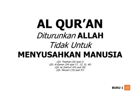 Diturunkan ALLAH Tidak Untuk MENYUSAHKAN MANUSIA (QS. Thaahaa (20) ayat 2) (QS. Al-Qamar (54) ayat 17, 22, 32, 40) (QS. Az Zukhruf (44) ayat 58) (QS. Maryam (19) ayat 97) BUKU 1 135