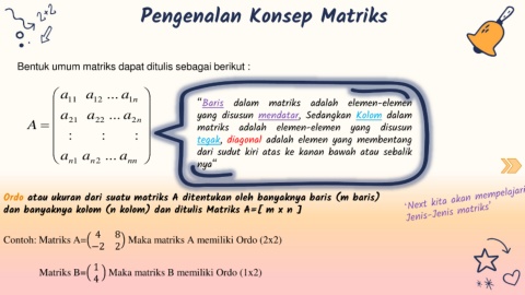 Ordo atau ukuran dari suatu matriks A ditentukan oleh banyaknya baris (m baris)
