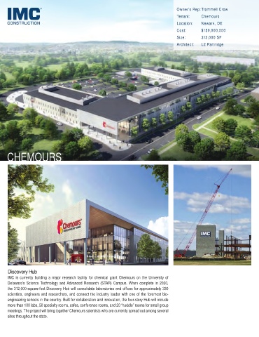 IMC is currently building a major research facility for chemical giant Chemours on the University of