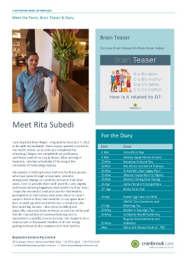 Meet the Team, Brain Teaser & Diary