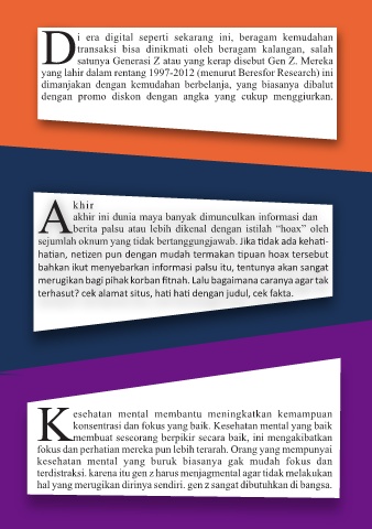 terdistraksi. karena itu gen z harus menjagmental agar tidak melakukan