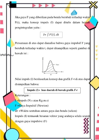 F(t), maka konsep impuls (I) dapat ditulis dalam bentuk