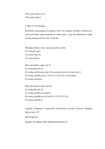 Kemudian melanjutkan konfigurasi inter-vlan dengan membuat subinterface