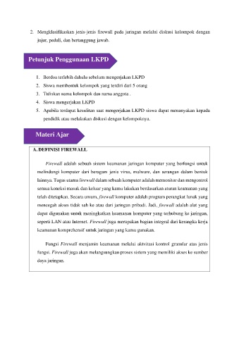 2. Mengklasifikaskan jenis-jenis firewall pada jaringan melalui diskusi kelompok dengan