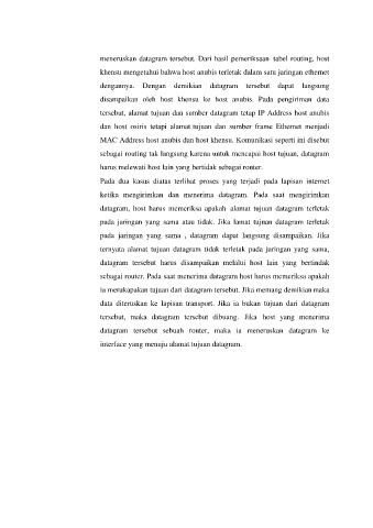 meneruskan datagram tersebut. Dari hasil pemeriksaan tabel routing, host
