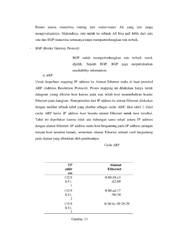 dengan melihat sebuah tabel yang disebut sebagai cache ARP, lihat tabel 1. Entri