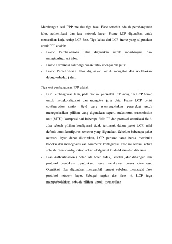 - Fase Pembangunan Jalur, pada fase ini perangkat PPP mengirim LCP frame