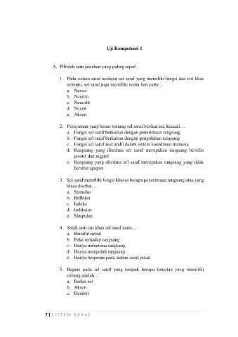 e. Rangsang yang diterima sel saraf merupakan rangsang yang tidak