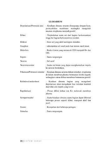 Depolarisasi/Potensial aksi : Keadaan dimana neuron dirangsang dengan kuat,
