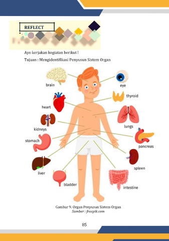 REFLECT Ayo kerjakan kegiatan berikut ! Tujuan : Mengidentifikasi Penyusun Sistem Organ Gambar 9. Organ Penyusun Sistem Organ Sumber : freepik.com 85