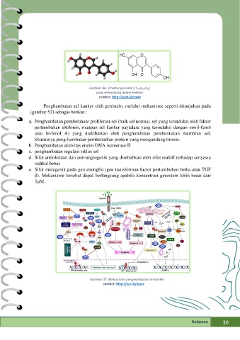 Penghambatan sel kanker oleh genistein, melalui mekanisme seperti ditunjukan pada