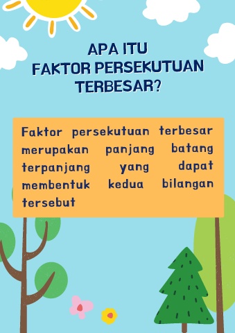 APA ITU APA ITU FAKTOR PERSEKUTUAN FAKTOR PERSEKUTUAN TERBESAR? TERBESAR? Faktor persekutuan terbesar merupakan panjang batang terpanjang yang dapat membentuk kedua bilangan tersebut