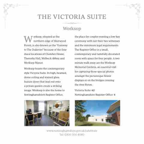 a private garden create a striking image. Worksop is also the home to Nottinghamshire’s Register Office,