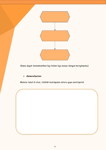 (Kamu dapat menambahkan lagi kolom lagi sesuai dengan keinginanmu) Generalization Melalui tabel di atas, tulislah kesimpulan antara gaya sentripetal 11