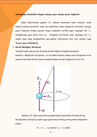 melengkung disebabkan dengan adanya gaya menuju pusat lingkaran”