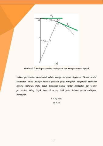 Gambar 2.5 Arah percepatan sentripetal dan kecepatan sentripetal