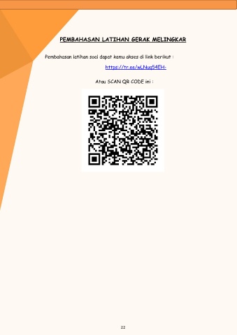 PEMBAHASAN LATIHAN GERAK MELINGKAR Pembahasan latihan soal dapat kamu akses di link berikut : https://tr.ee/wLNuq54EH- Atau SCAN QR CODE ini : 22