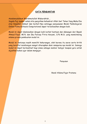 Ahmad Fauzi, M.Pd. dan Ibu Fairusy Fitria Haryani, S.Pd M.Si. yang membimbing