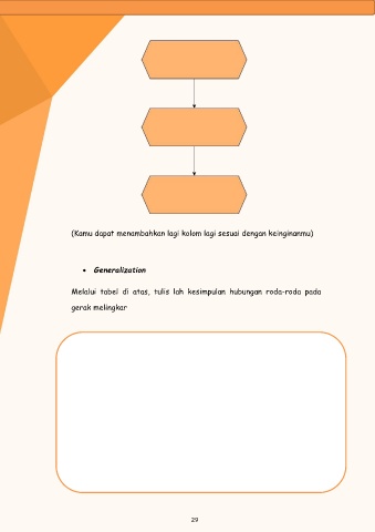 (Kamu dapat menambahkan lagi kolom lagi sesuai dengan keinginanmu) Generalization Melalui tabel di atas, tulis lah kesimpulan hubungan roda-roda pada gerak melingkar 29