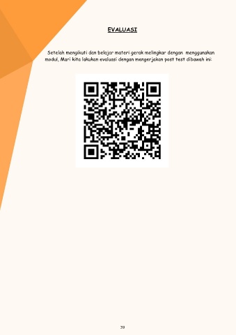 EVALUASI Setelah mengikuti dan belajar materi gerak melingkar dengan menggunakan modul, Mari kita lakukan evaluasi dengan mengerjakan post test dibawah ini: 39