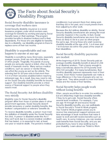 provides benefits to disabled workers and to their Security disability beneficiaries are more than three