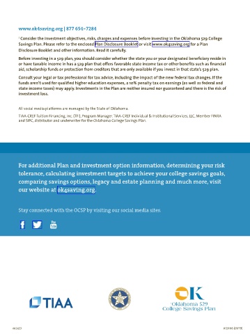 Savings Plan. Please refer to the enclosed Plan Disclosure Booklet or visit www.ok4saving.org for a Plan