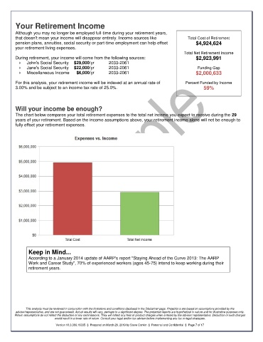 years of your retirement. Based on the income assumptions above, your retirement income alone will not be enough to