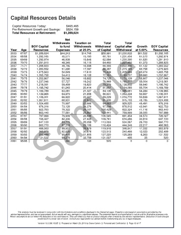 Year Age Resources Expenses at 25.0% of Capital Withdrawal at 5.00% Resources