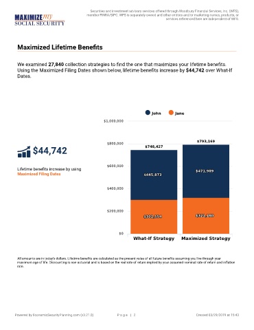 Using the Maximized Filing Dates shown below, lifetime benefits increase by $44,742 over What-If