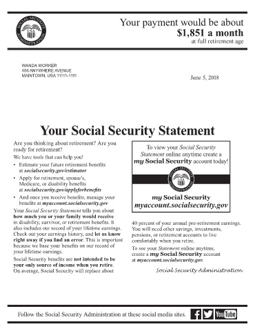 Check out your earnings history, and let us know pensions, or retirement accounts to live