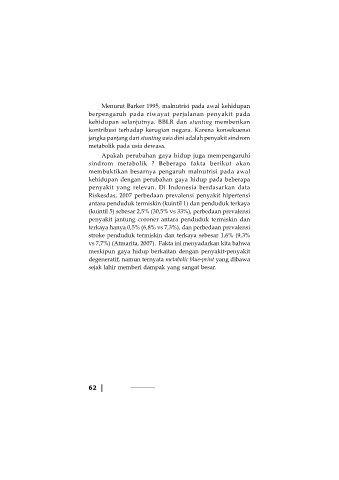 Menurut Barker 1995, malnutrisi pada awal kehidupan