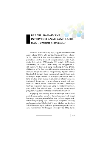 (Riskesdas, 2013). Bayi yang lahir stunting cenderung tumbuh