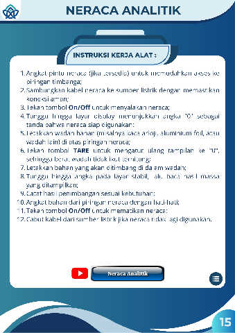 12.Cabut kabel dari sumber listrik jika neraca tidak lagi digunakan.