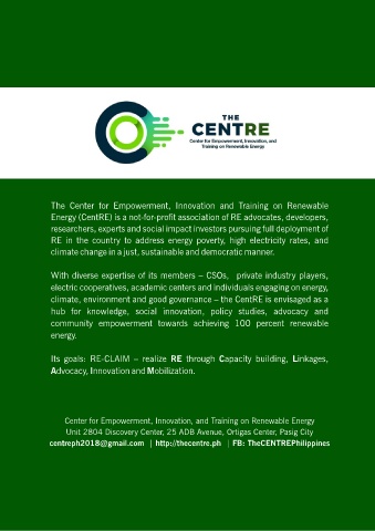 Energy (CentRE) is a not-for-prot association of RE advocates, developers,