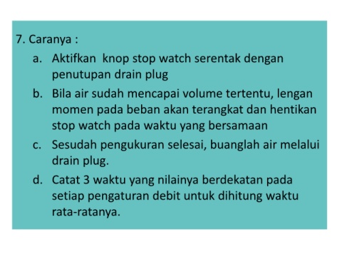 setiap pengaturan debit untuk dihitung waktu
