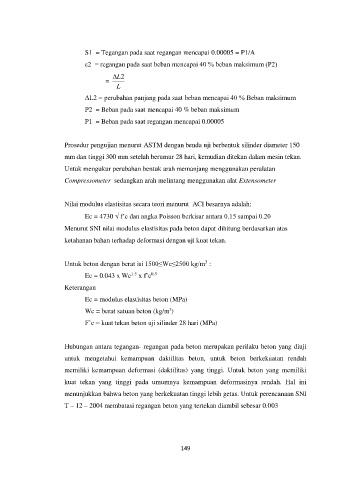 Nilai modulus elastisitas secara teori menurut ACI besarnya adalah:
