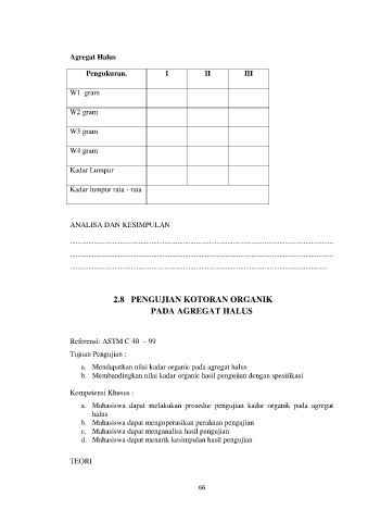 a. Mahasiswa dapat melakukan prosedur pengujian kadar organik pada agregat