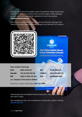 Sahabat juga bisa bersedekah lewat Amazing Box. Insya Allah, sedekah