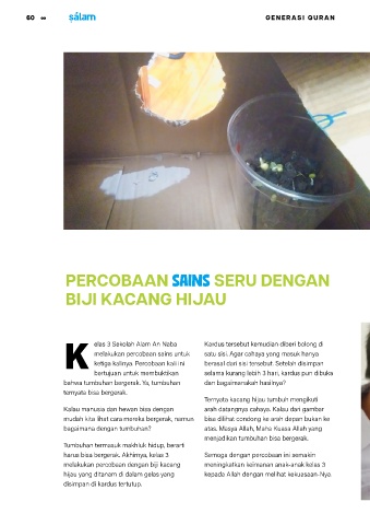 melakukan percobaan dengan biji kacang meningkatkan keimanan anak-anak kelas 3