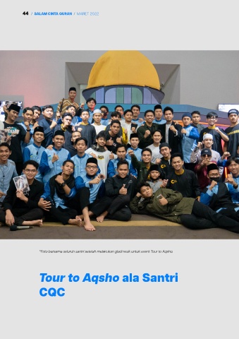 44 / SALAM CINTA QURAN / MARET 2022 *Foto bersama seluruh santri setelah melakukan gladi resik untuk event Tour to Aqsho. Tour to Aqsho ala Santri CQC