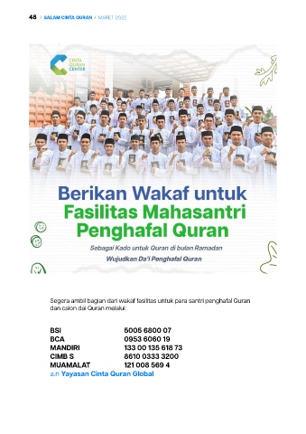 Segera ambil bagian dari wakaf fasilitas untuk para santri penghafal Quran