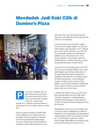 outing kali ini berkenaan          menaburkan toping pizza. Dengan hati-hati,