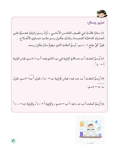 )4أارس ُم المثلث أا ب جـ ،فيه :أا ب = ٥سم ،والزاوية اأ = ،ْ 4٠والزاوية جـ = ْ ١٠٠