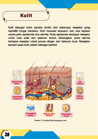 Kulit sebagai indra peraba terdiri dari beberapa reseptor yang