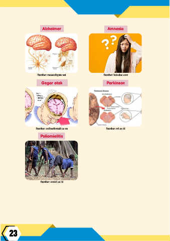 Alzheimer Amnesia Sumber: researchgate.net Sumber: halodoc.com Gegar otak Parkinson Sumber: onlinefirstaid.co.za Sumber: rri.co.id Poliomielitis Sumber: orami.co.id 23