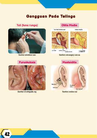 G a n g g u a n P a d a T e l i n g a G a n g g u a n P a d a Te l i n g a Tuli (tuna rungu) Otitis Media Sumber: alodokter.com Sumber: ent-surgery.com.au Furunkulosis Mastoiditis Sumber: id.wikipedia.org Sumber: emdocs.net 42