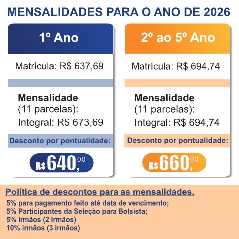 MENSALIDADES PARA O ANO DE 2026