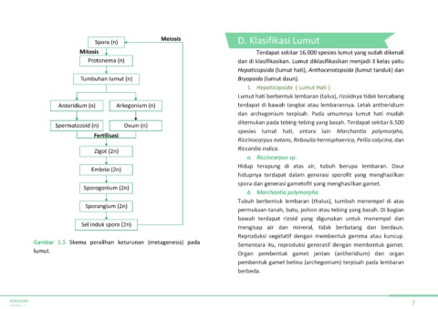 Meiosis Spora (n) Mitosis Protonema (n) Tumbuhan lumut (n) Anteridium (n) Arkegonium (n) Spermatozoid (n) Ovum (n) Fer lisasi Zigot (2n) Embrio (2n) Sporogonium (2n) Sporangium (2n) Sel induk spora (2n) berbeda. KINGDOM 7 PLANTAE