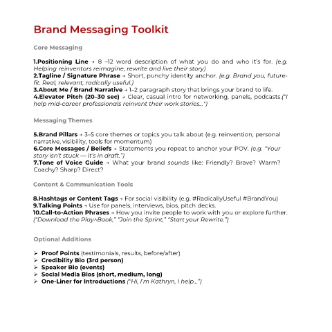 8.Hashtags or Content Tags → For social visibility (e.g. #RadicallyUseful #BrandYou)