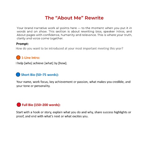 Your name, work focus, key achievement or passion, what makes you credible, and